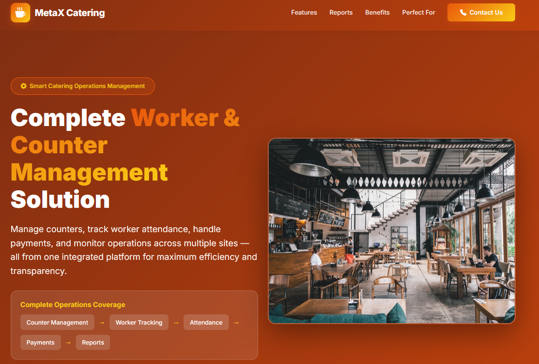 Get DetailStreamline your entire catering operations with counter management, worker tracking, attendance, and payment reports — all from a single, user-friendly dashboard. Ideal for catering businesses and food services.