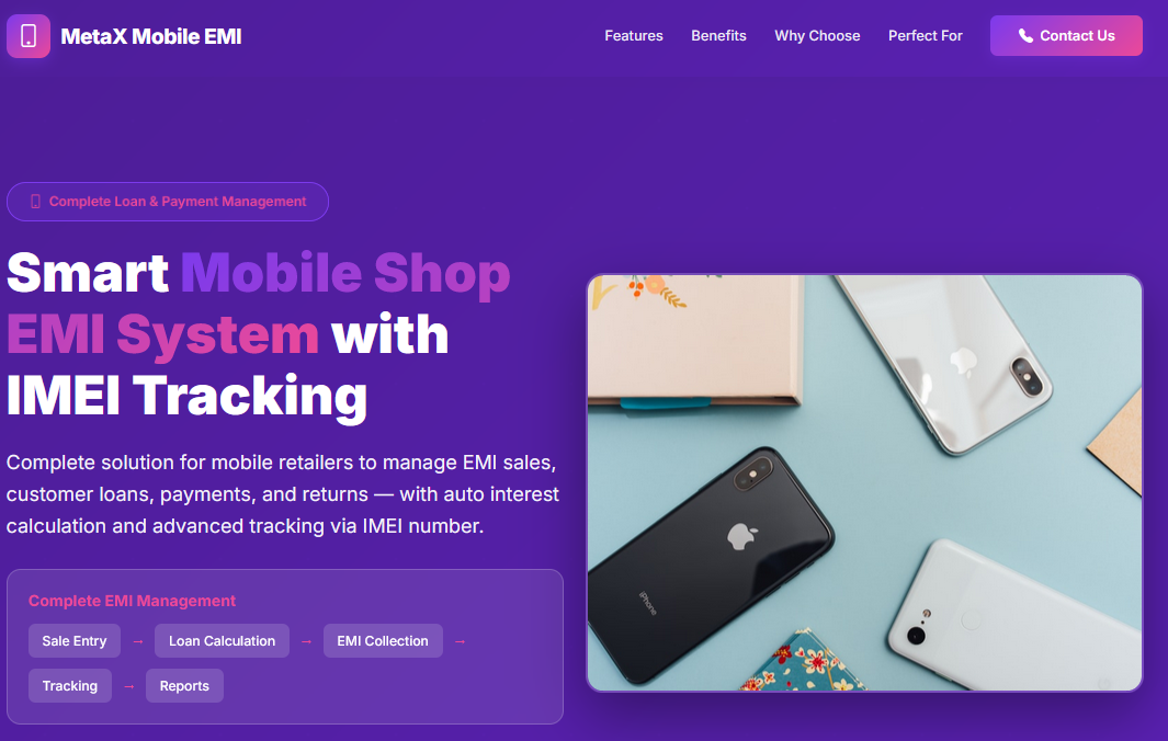 Get DetailA complete solution for mobile retailers to manage EMI sales, customer loans, payments, and returns — with auto interest calculation and advanced tracking via IMEI number. Perfect for mobile shops.